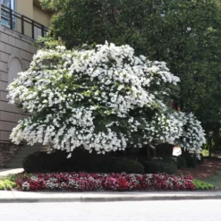 Even better? It’s versatile. There is no wrong place to plant this delightful tree. It grows perfectly well as the focal point of your landscape and doesn’t need accompanying trees to make a statement. Plus, reaches a compact size, making its blizzard of white blossoms an excellent choice to plant along streets, near large buildings, next to patios or as a property border.